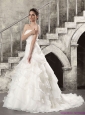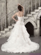 2015 Pretty White Strapless Beach Wedding Dresses with  Brush Train and Ruffles