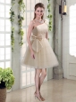 Home >  Prom Dresses >  Short Prom Dresses > 2015 Princess One Shoulder Bowknot Lace Prom Dresses in Champagne