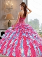 2015 Puffy Ball Gown Quinceanera Dress with Appliques and Ruffles