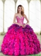 2015 Puffy Multi Color Quinceanera Dresses with Beading and Ruffles