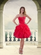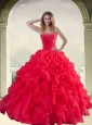 2015 Red Strapless Quinceanera Dress with Ruffles and Beading