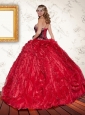2015 Red Sweetheart Luxurious Quinceanera Dresses with Beading and Ruffles