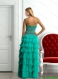 2015 Romantic High Low Prom Dresses with Beading and Ruffled Layers
