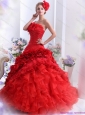 2015 Romantic Strapless Dresses for a Quinceanera with Hand Made Flowers