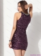 2015 Sexy Bateau Mini Length Prom Dress with Sequins