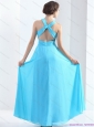 2015 Sexy Halter Top Floor Length Prom Dress with Ruching and Beading
