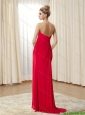 2015 Simple Red Sweetheart Sweep Train Prom Dresses with Ruching and High Slit