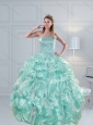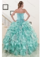 2015 Sophisticated Aqual Blue Quinceanera Dresses with Beading and Ruffles