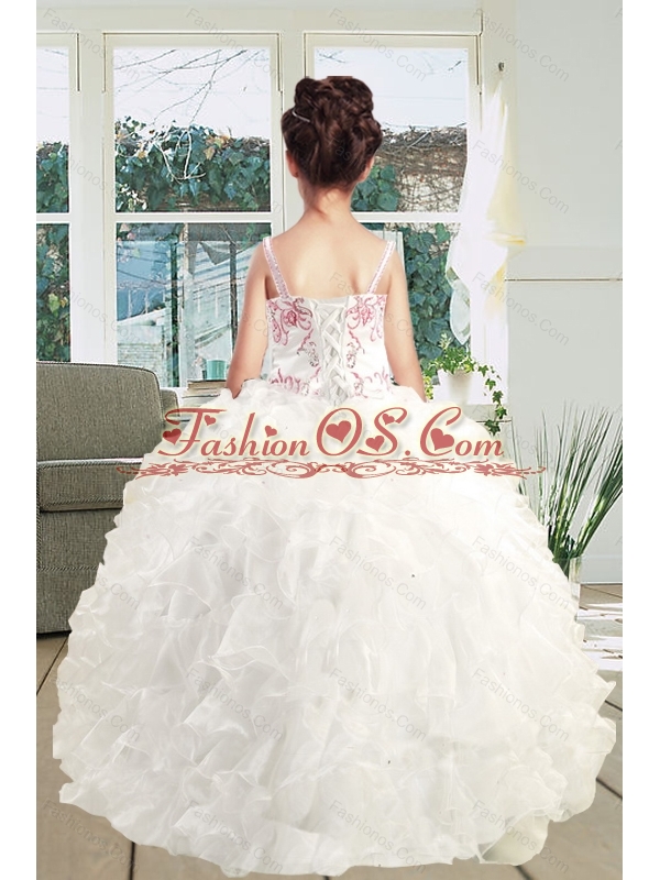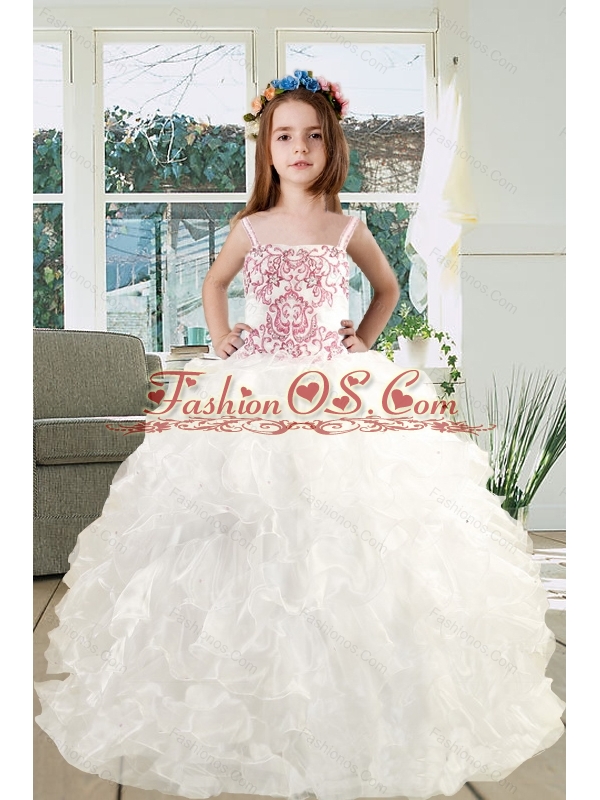 Home >  Special Occasion Dresses >  New Style Little Girl Pageant Dresses > 2015 Spaghetti Straps Embroidery Ruffles White Organza Little Girl Pageant Dress