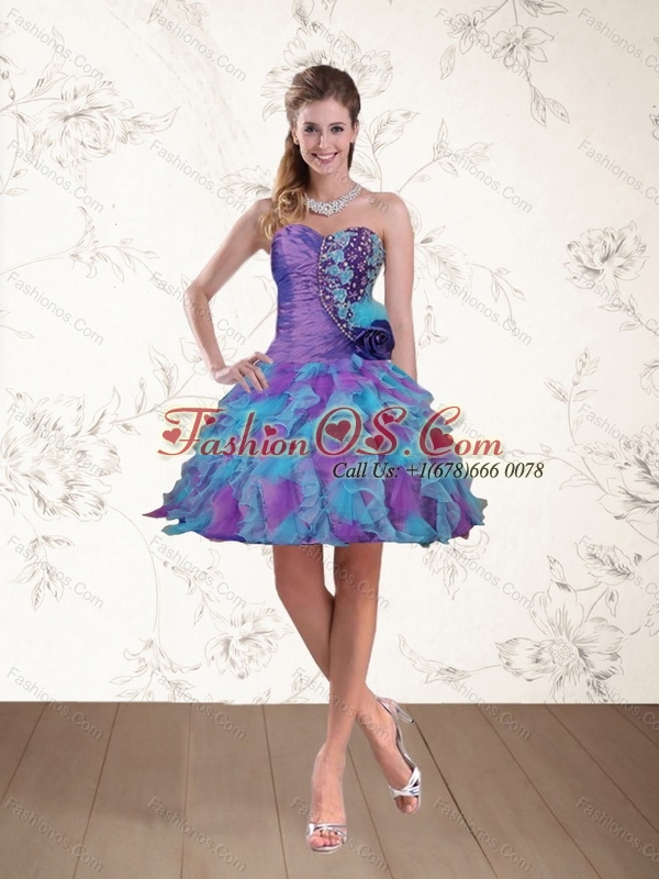 2015 Spring Sweetheart Beaded Multi Color Prom Dresses with Hand Made Flower