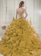 2015 Spring Sweetheart Brush Train Beading Gold Quinceanera Dress