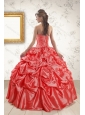 Home >  Quinceanera Dresses >  15 Quinceanera Dresses > 2015 Strapless Coral Red Quinceanera Dresses with Pick Ups and Beading