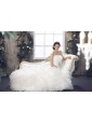 2015 Strapless White Beach Wedding Dresses with Ruffled Layers and Court Train