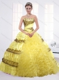 2015 Strapless Yellow Quinceanera Dresses with Beading and Ruffles