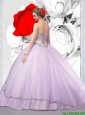 2015 Summer New Style Beaded White and Lavender Sweet 16 Dresses with Brush Train