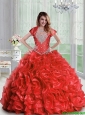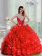 2015 Summer Prefect Beaded and Ruffles Quinceanera Dresses in Red