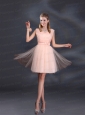 2015 Sweet Belt Mini Length Prom Dresses with V Neck