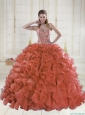 2015 Sweetheart Brush Train Red Quinceanera Dresses