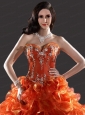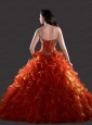 2015 Sweetheart Orange Red Appliques and Ruffles Gowns for Quinceanera