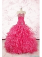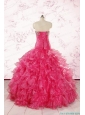 2015 Sweetheart Sequins Ruffles Unique Hot Pink Quinceanera Dresses