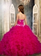 2015 The Most Popular Sweetheart Ruffles and Beading Quinceanera Dresses   in Hot Pink