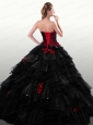 2015 The Super Hot Strapless Red and Black Quinceanera Dresses with Ruffles