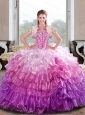 2015 Unique Beading and Ruffled Layers Multi Color Dresses for Quince
