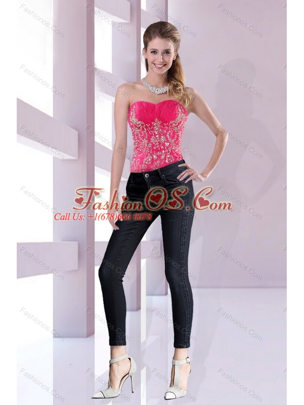 2015 Unique Hot Pink Sweetheart Corset with Embroidery