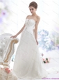 2015 Unique Lace White Wedding Dresses with Chapel Train