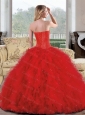 2015 Unique Sweetheart Red Quinceanera Dresses with Appliques and Ruffles