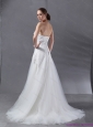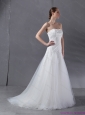 2015 White Strapless Beach Wedding Dresses with Brush Train and Appliques