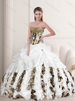 2015 White Strapless Leopard Printed Quinceanera Dresses with Pick Ups
