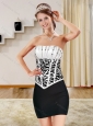 2015 Zebra Print White and Black Quince Dresses with Beading and Ruffles