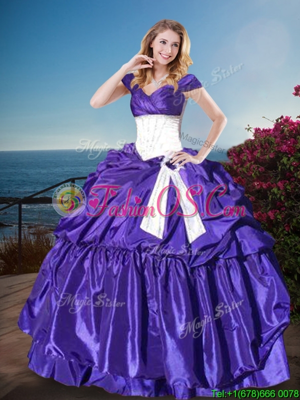 2016 Affordable Off the Shoulder Cap Sleeves Quinceanera Gown with Belt and Pick Ups