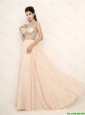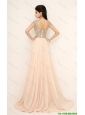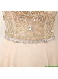 2016 Beautiful Beaded Bateau Prom Dresses with Brush Train