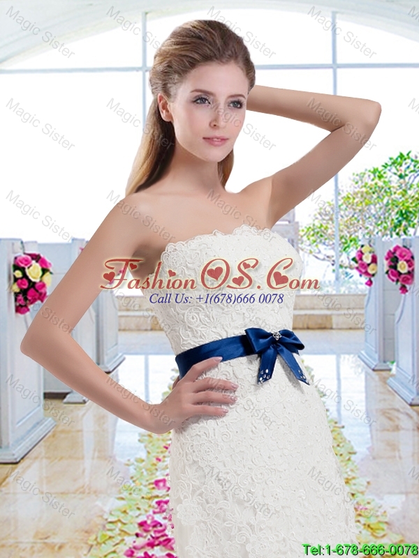 2016 Beautiful Empire Wedding Gowns with Lace and Bowknot