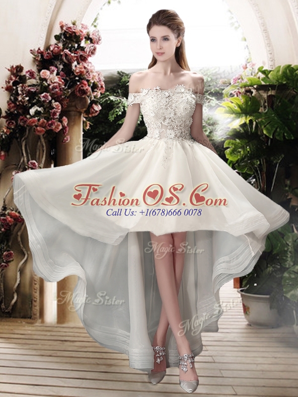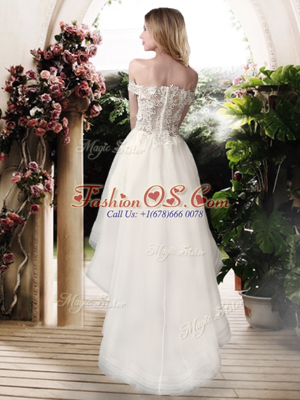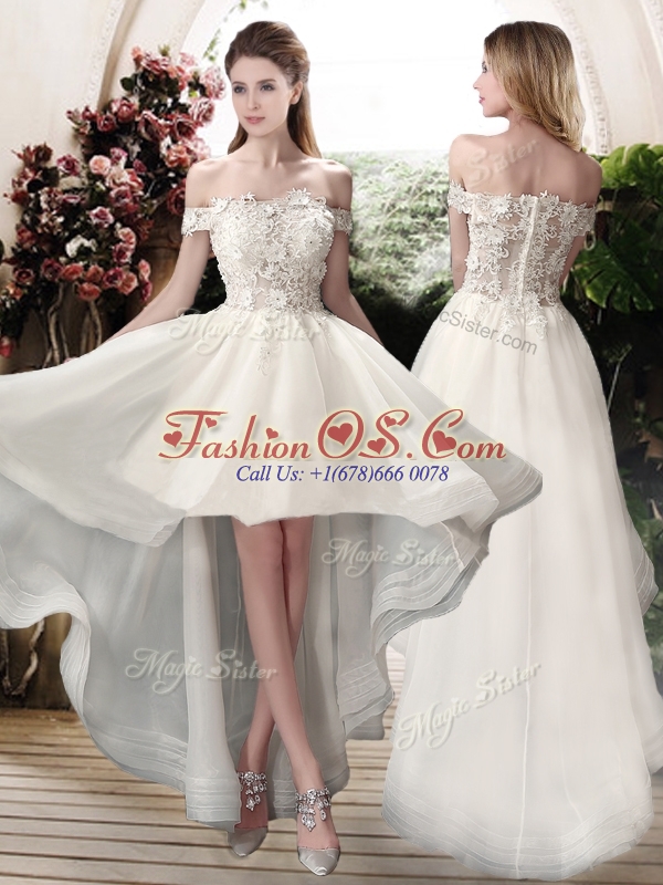 2016 Beautiful Off the Shoulder High Low Wedding Dresses with Appliques