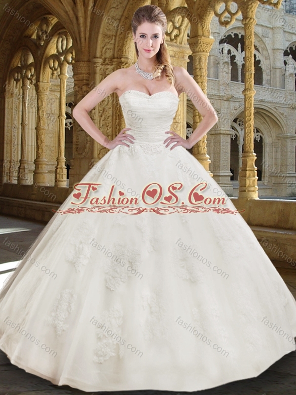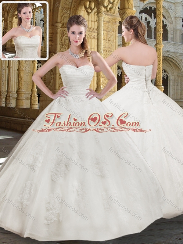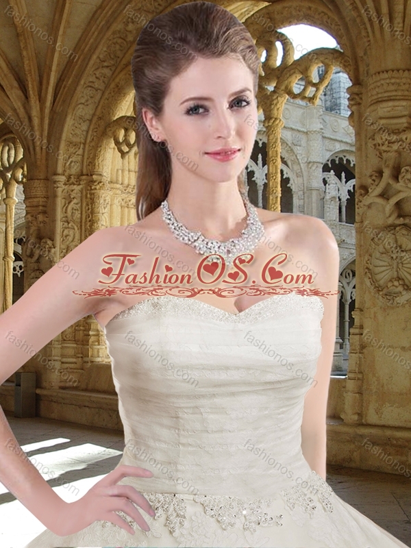 2016 Beautiful Sweetheart Long White Wedding Dress with Appliques
