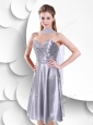 Home >  Special Occasion Dresses >  Dama Dresses for Quinceanera > 2016 Best Empire Elastic Woven Satin Silver Dama Dresses for Quinceanera with Beading and Ruching