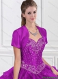 2016 Cheap Beaded and Ruffles Sweet 16 Gowns in Fuchsia