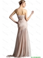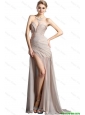 2016 Cheap Column Sweetheart Brush Train Prom Dresses with High Slit
