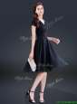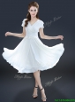 2016 Cheap Knee Length V Neck Modest Prom Dresses with Ruching