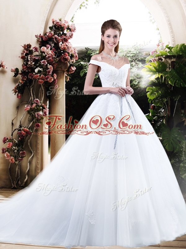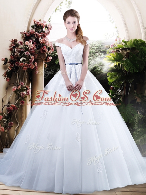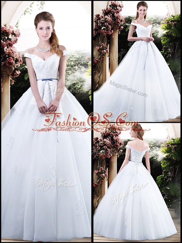 Home >  Wedding Dresses >  Romantic Wedding Dresses > 2016 Cheap Off the Shoulder Wedding Dresses with Appliques and Belt