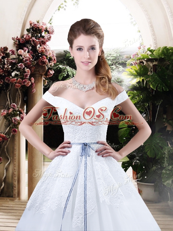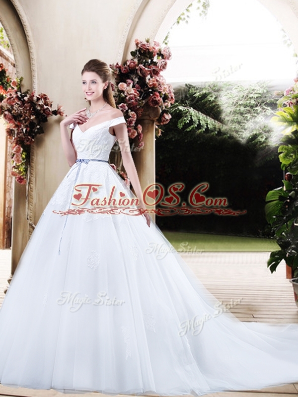 2016 Cheap Off the Shoulder Wedding Dresses with Appliques and Belt