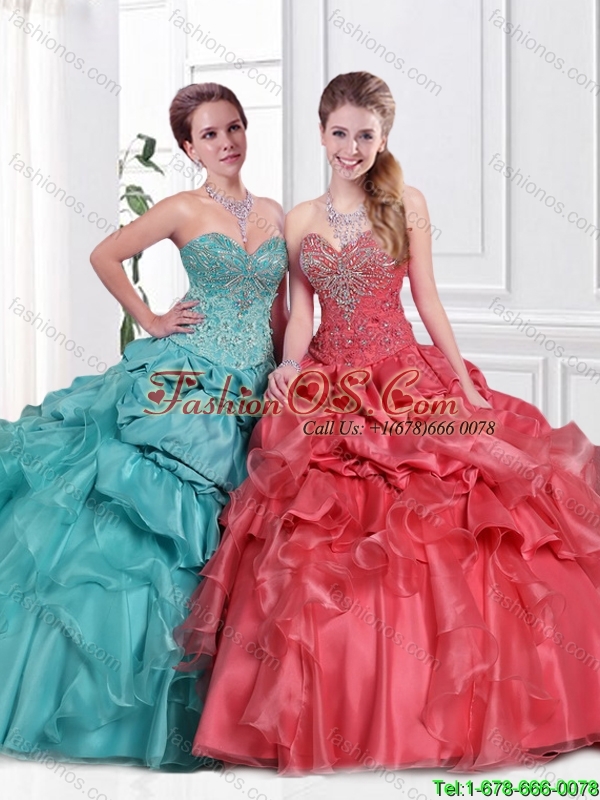 2016 Classical Appliques and Beaded Sweet 16 Dresses with Floor Length
