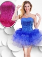 2016 Colorful Strapless Short Dama Dresses for Quinceanera with Sequins and Ruffles