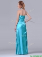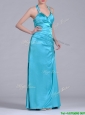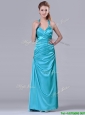 2016 Column Halter Top Elastic Woven Satin Aqua Blue Prom Dress with Ruching