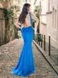 Home >  Prom Dresses >  Customized Prom Dresses > 2016 Column Ruffled Blue Backless Prom Dress with Brush Train
