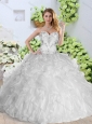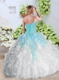 2016 Cute Sweetheart White Quinceanera Dresses with Appliques and Ruffles