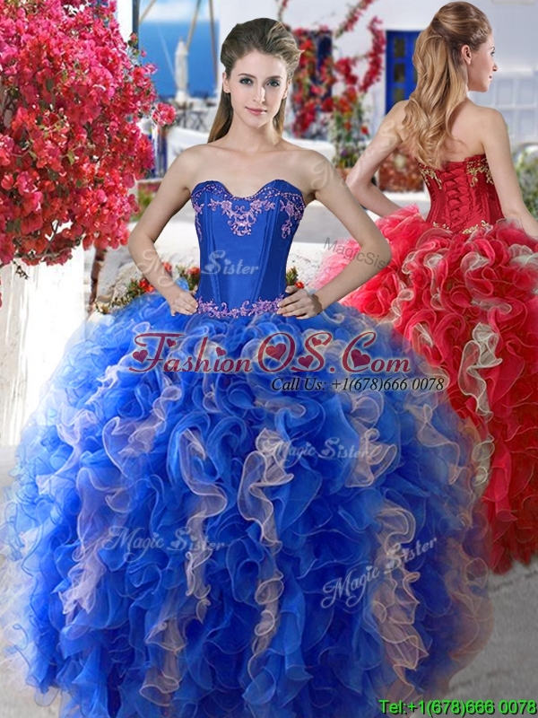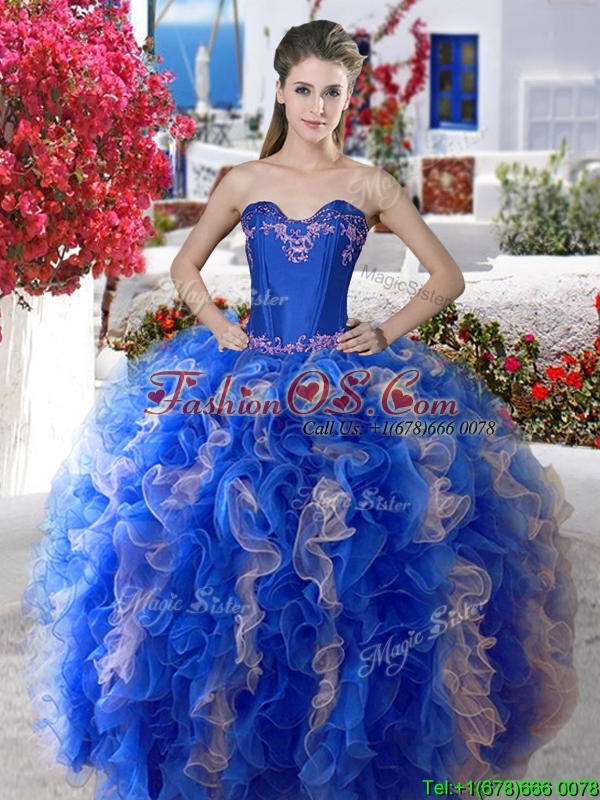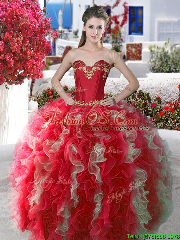 2016 Elegant Applique and Ruffled Big Puffy Quinceanera Dress in Organza